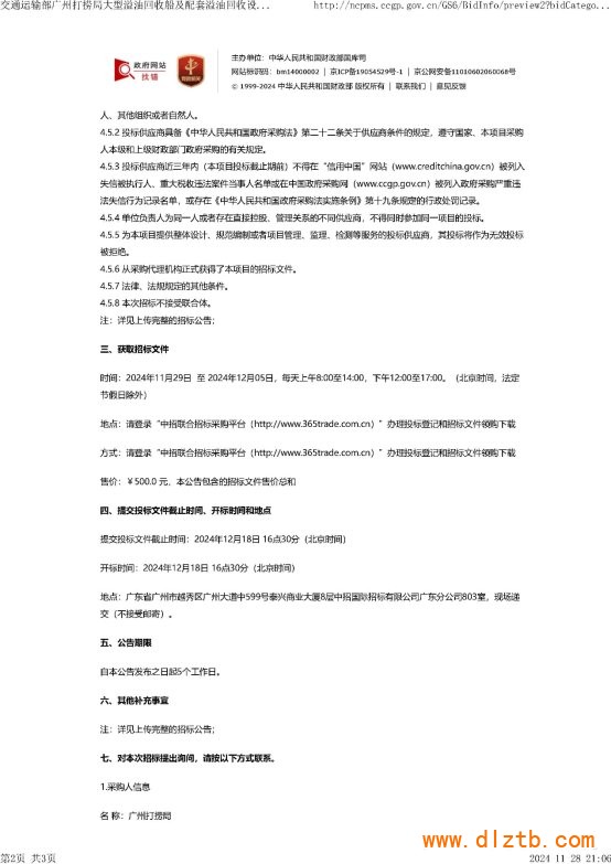 備注:欲購買招標(biāo)文件的潛在投標(biāo)人,注冊網(wǎng)站并繳納因特網(wǎng)技術(shù)服務(wù)費(fèi)后,查看項目業(yè)主,招標(biāo)公告并下載資格預(yù)審范圍,資質(zhì)要求,招標(biāo)清單,報名申請表等。為保證您能夠順利投標(biāo),具體要求及購買標(biāo)書操作流程按會員區(qū)招標(biāo)信息詳細(xì)內(nèi)容為準(zhǔn),以招標(biāo)業(yè)主的解答為準(zhǔn)本。