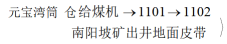 ①輸送區間:五家溝煤場101暗道給煤機→101→102→201機尾破碎機→201→202皮帶
